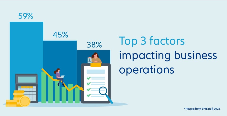 Increased operational costs (59%), Changes in consumer demand (45%) and Regulatory changes (38%) are the top factors impacting businesses in 2025.
